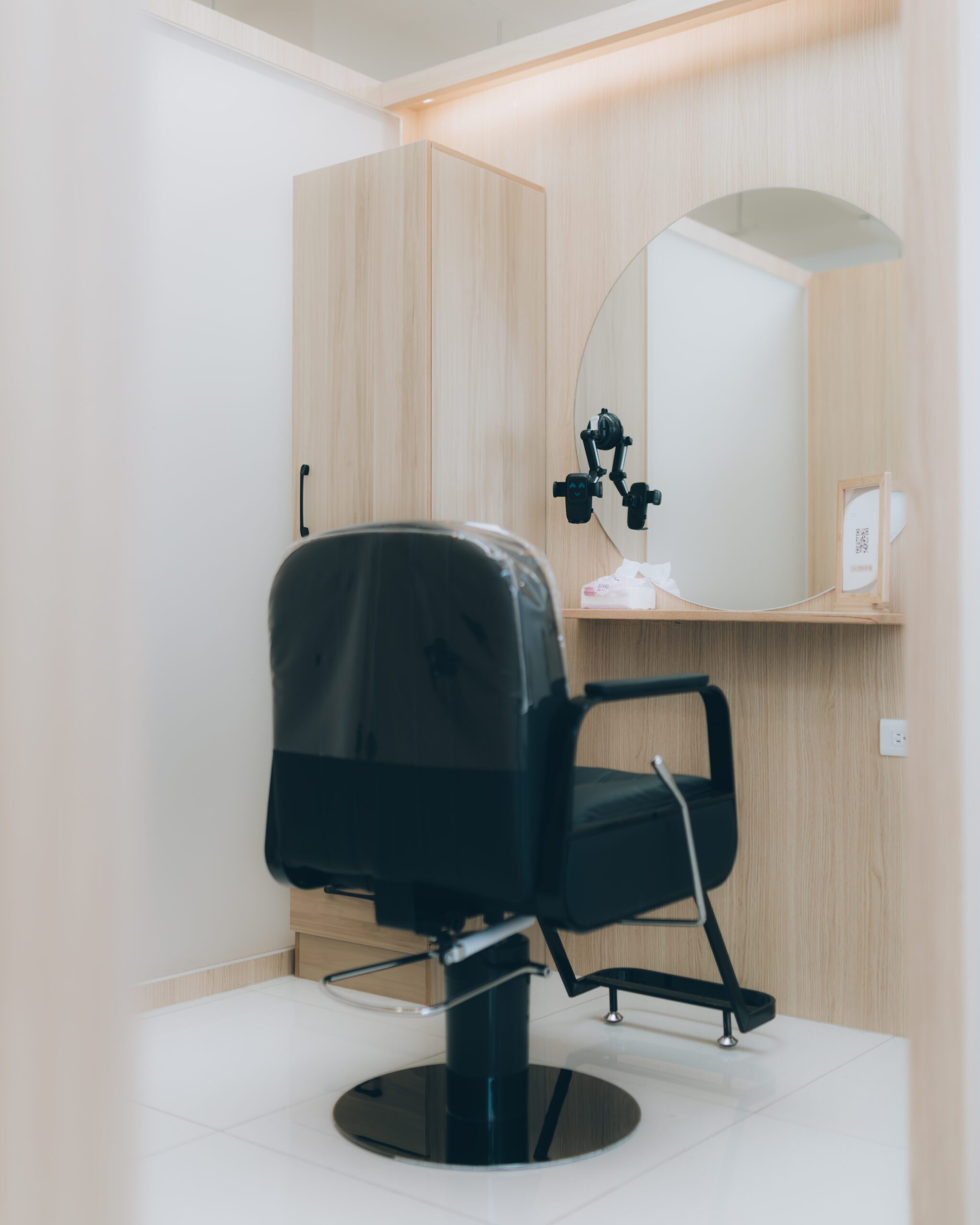 一張美髮椅、一台工作推車、、備所、洗頭台、藥劑謂配工作間、客人用毛巾、燙染髮團巾、溫塑機器、加熱捲心、ET加溫機器、紅外線烘罩機器、奈米護髮機、冷燙捲心、變頻空調、冰箱、毛巾蒸氣箱、手機充電線、紙杯、小餅干、桌上鏡、廁所、100M光纖網路。